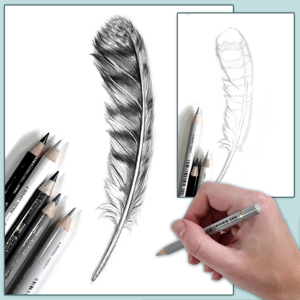Heb je zin om gezellig met mij mee te tekenen? In deze live les leer je hoe je een veer tekent met kleurpotloden! Deze tekening lijkt misschien simpel, maar toch kun je aan de hand van deze veer goed leren hoe je met kleurpotlood lagen en contrast opbouwt.